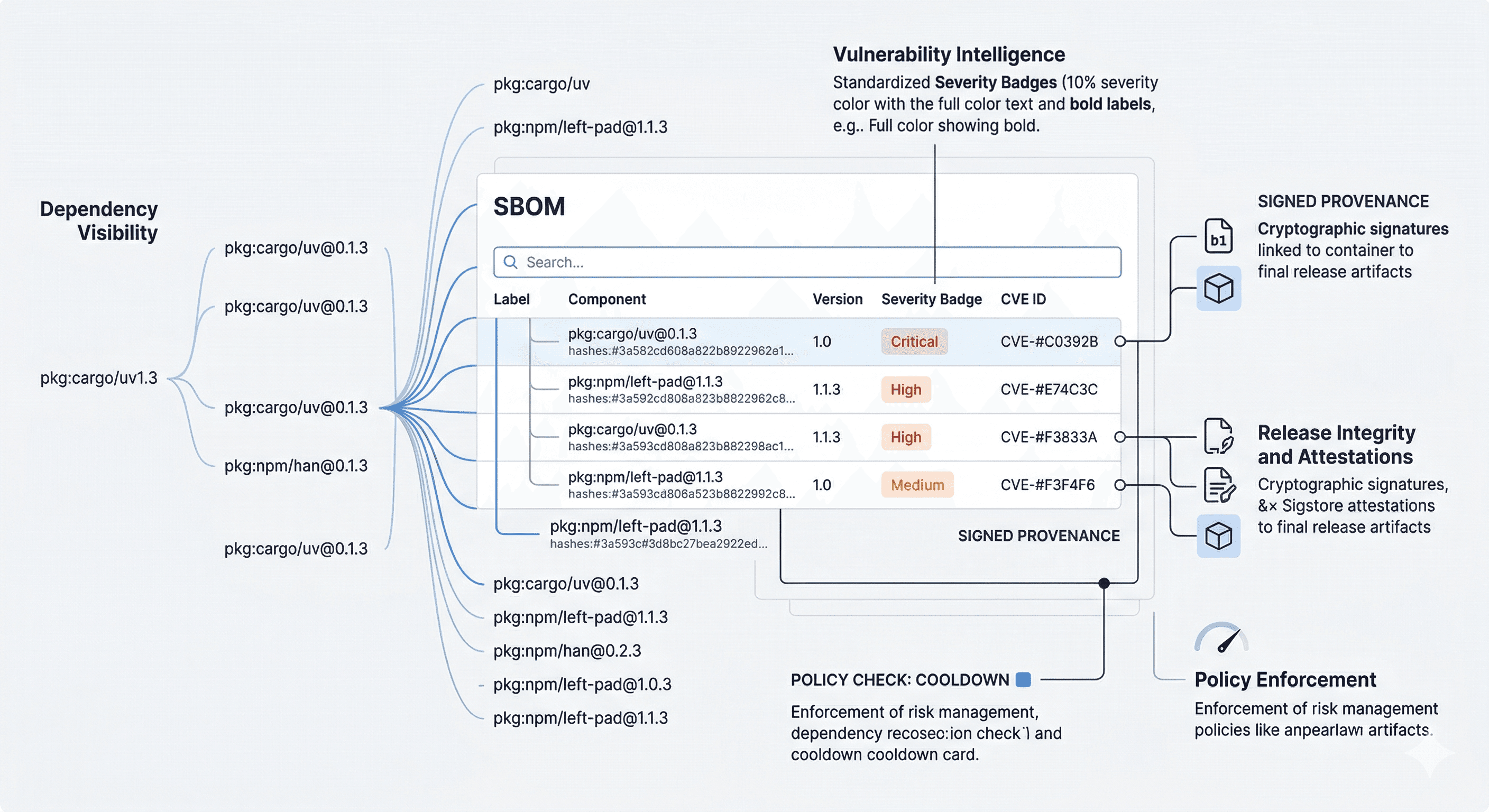 We help teams build security into their lifecycle, providing the visibility and traceability needed to demonstrate compliance confidently.